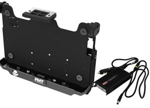 Docking Station For Dell Latitude 7230 Rugged Extreme Tablet. Ultra-slim, low profile design minimize protrusion with vehicle operating space, includes a key lock for increased security and aluminum construction provides rugged, lightweight durability. This is the Quad RF pass-through, ‘Full’ (with HDMI) version. No RF pass-through, ‘Lite’ (without HDMI) versions and cradle without port replication or electronics also available. Power adapter included.