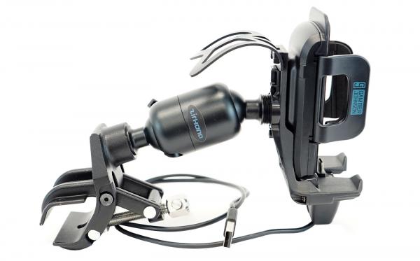 This kit includes a Universal USB-C Phone Charging Cradle, Zirkona Medium 2-Down Joiner with Brake and Screw Clamp. The Universal USB-C phone charging cradle positions your device within the driver’s view for productivity on the move. The cradle features adjustable arms, one-button push release, and an adjustable USB-C connection for compatibility across many handheld devices.