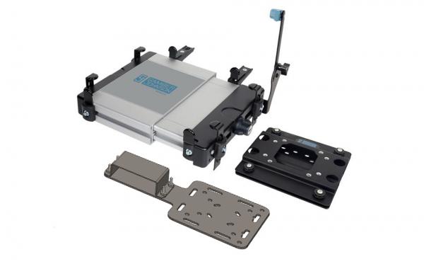 This Notepad V kit includes the universal cradle, screen support, isolator plate, and power supply mount. Ready to attach to a Gamber-Johnson motion attachment to complete your vehicle solution.