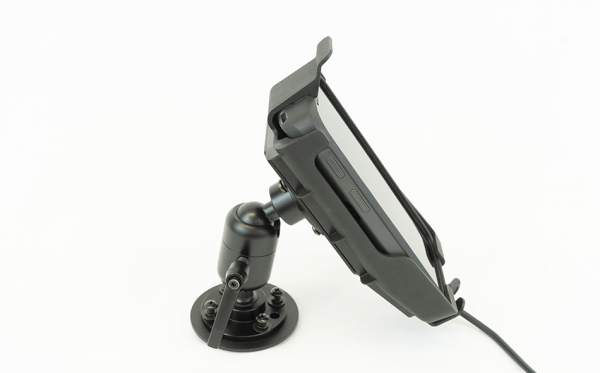 Round plates offer AMPS hole pattern to mount cradle, and to attach to a Gamber-Johnson dash mount or other AMPS mounting options.